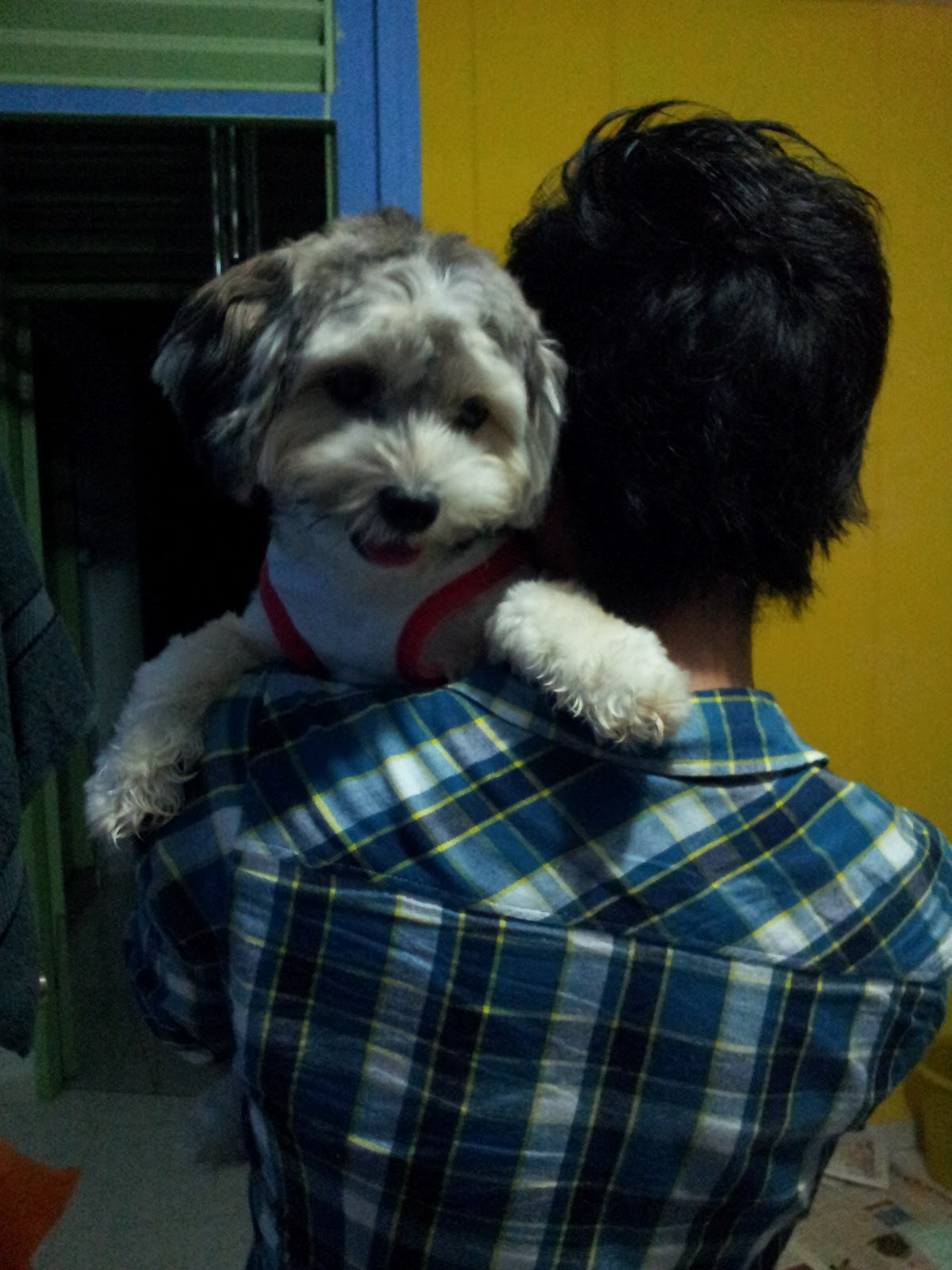 Have changed their clothes cuz its dirty already. Both of them just showered 3-4 days ago and they are smelling already!! The shampoo they used isn't as fragrant as the one we're using. T.T*SMILE* - for the treat treat!