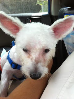 After almost one month of medication, LOOK! His tear stains gone, and fur growing back! I was so so happy to see the cute side of him. And when I look back at his photo, I can't think of any reason why I took him back. And he was really daring. :)